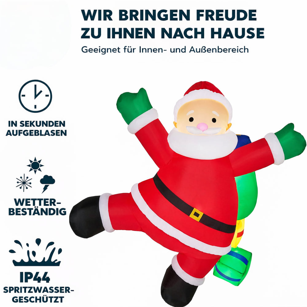 Christmas decoration for the season: This inflatable figure features a climbing Santa Claus with a gift sack and is clearly visible in the evening thanks to LED lighting. Ideal for outdoor use such as yard, terrace, entrance area, or garden. Easy to set up, fastening parts included, and after the holiday, the decoration can be deflated to save space.