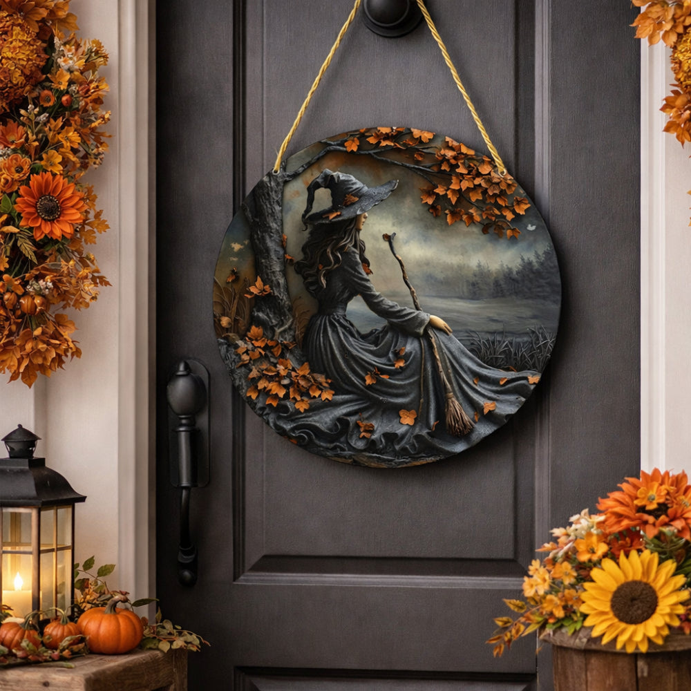 Wall Decoration Door Sign Mystical Witch Motif Round Design