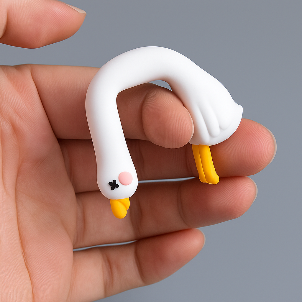 - Design: 3D Cartoon-Ente mit glatter Oberfläche