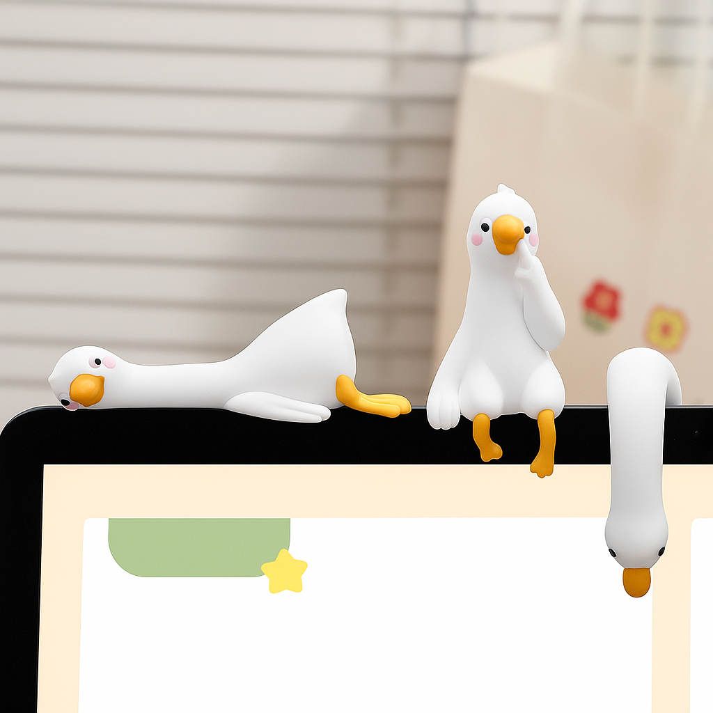 - Niedliches Design: Die charmante Cartoon-Ente bringt Spaß und Persönlichkeit auf deinen Schreibtisch oder Monitor.